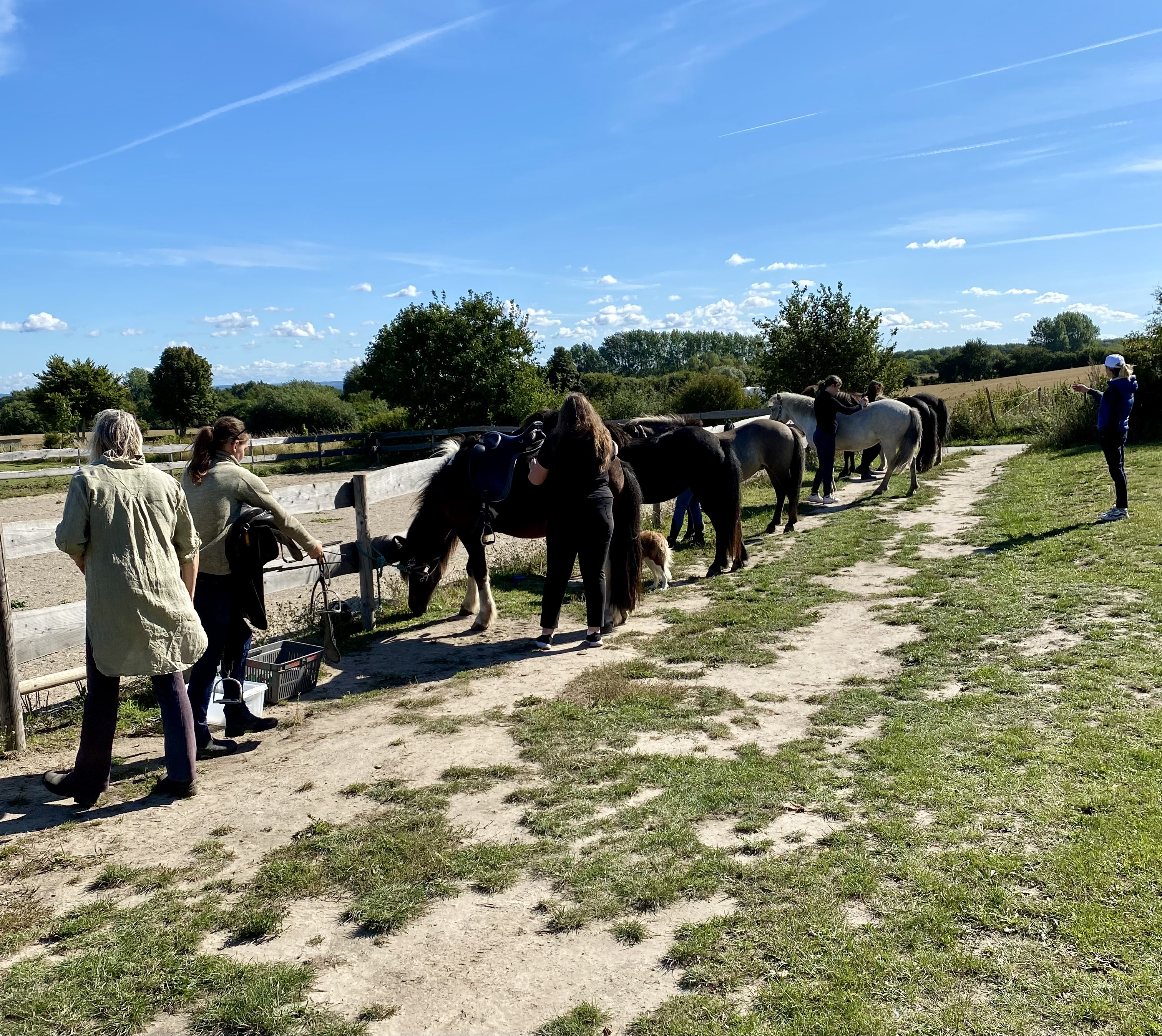 På ridelinjen kører vi ud til en nært liggende gård, som har 17 islandske heste, hvor vi både hjælper med at give vand, ordne folde, strigle heste og får rideundervisning to gange om ugen. Der er både baneundervisning og ture i skoven. Der er også indarbejdet lidt teori på holdet, samt mulighed for the og hygge på de kolde dage.